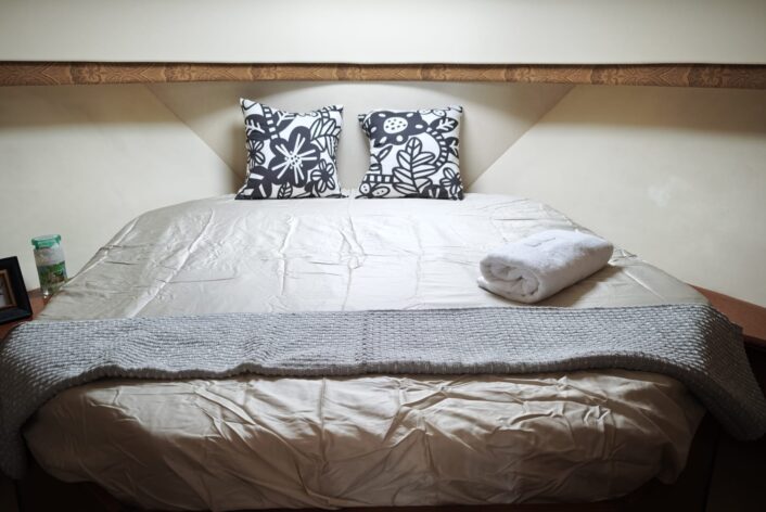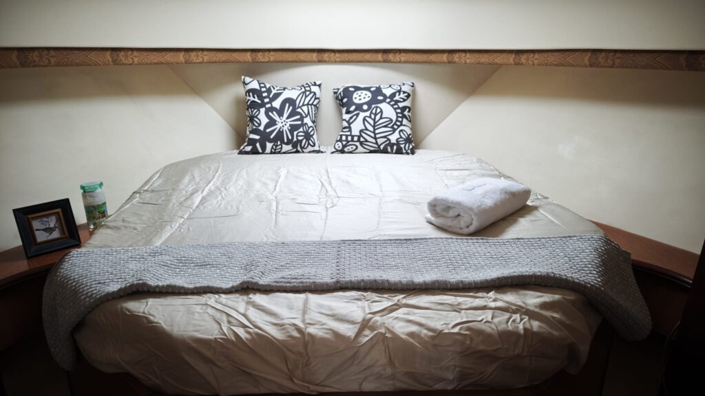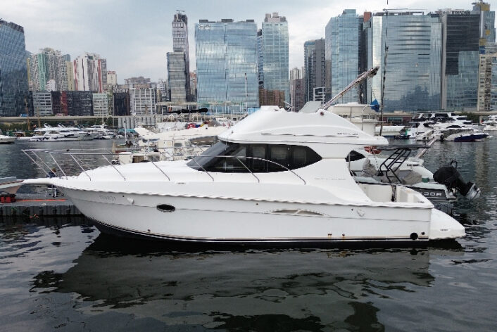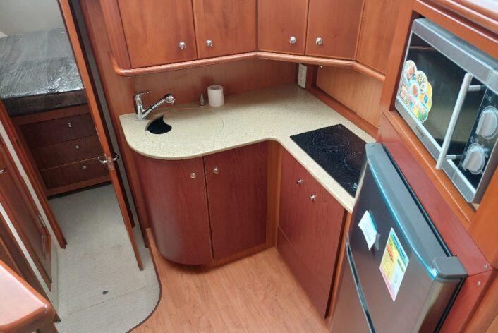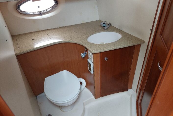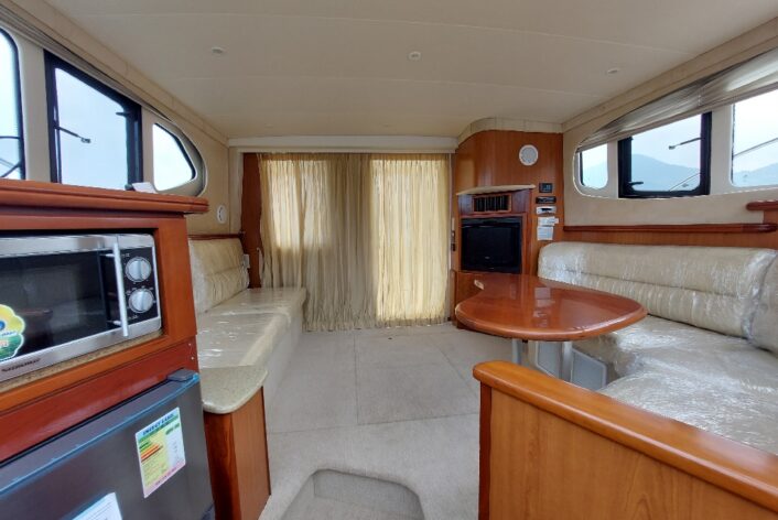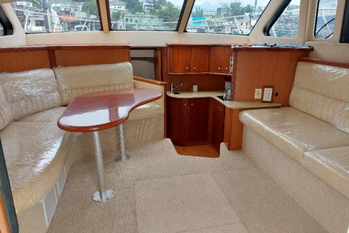 2 cabin layout with one washroom, Galley down, large saloon and spacious Flybridge.